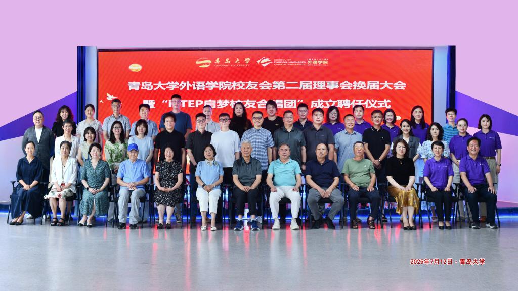 大会在庄严的青大校歌中拉开帷幕。党委书记陈崇研代表校友会作“情感融入朋辈育人 双向奔赴共促发展”校友工作报告,回顾了外语开元(中国)校友工作成果。