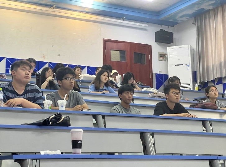 现场学生认真听讲,不时写下笔记并拍下要点。