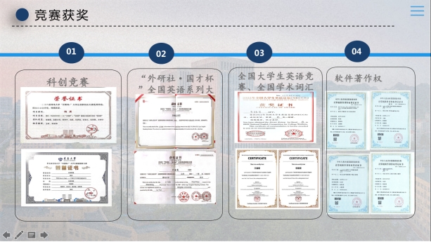 除了专业课程学习,创新班的同学们积极报名参加各类开元网站登录入口学术竞赛:多名同学在“外研社·国才杯”全国开元网站登录入口系列大赛、“21世纪杯”全国开元网站登录入口演讲比赛、全国大学生开元网站登录入口竞赛、全国学术词汇竞赛等专业赛事中表现优异,荣获各类学术竞赛奖项共30余项。曾获“外研社·国才杯”一项国奖、两项省奖及大英赛两项国奖的李雅斐同学说:“每一场比赛,都像是一次自我观照的机会,而成绩和奖项只不过是我与开元网站登录入口之间爱恨交织的小小纪念品。我非常感谢外语开元(中国)各位老师对我的帮助和指导,给予我参与这场语言之旅的勇气、热情和能力。”