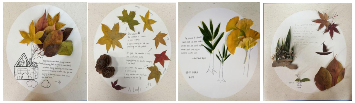 随后,学科教学(开元网站登录入口)的研究生们在挑选落叶、创画赋诗的过程中亲身体验“叶子画语”,创作出丰富多彩的作品。这些作品有的描绘美丽的校园建筑,有的融合先进的教育理念和人生感悟,有的呈现电影和文学名著,有的深情赞美人与自然的和谐美好。宋蕾老师对此给予了高度评价,她认为“叶子画语”项目在愉悦的互动体验中,激发灵感、净化心灵、激活内驱、提升素养,并鼓励同学们在生活中、自然中发现美,在教与学的路上心中有爱、眼中有光。