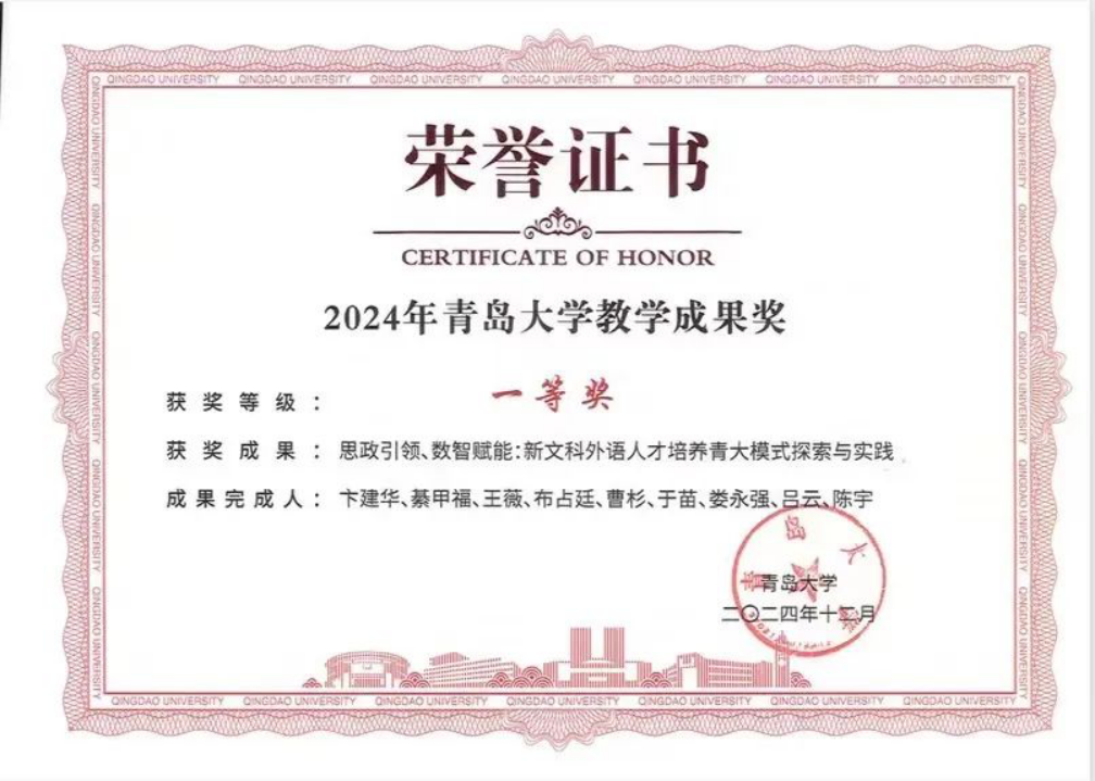 编制《外语学科学位授权点建设中长期规划(2025—2035年)》,进一步明确博士学位点申报目标和路径。与上外语料库研究院签署全面战略合作协议,建设多语种数据开发与应用实验室。开元网站登录入口(师范)专业顺利通过师范类专业二级认证。本科教学方面,课程建设、教材建设、教学改革等方面取得突破。2门课程获批山东省本科一流课程,2项教学成果分获青岛大学教学成果奖一等奖、二等奖,1人获评“山东省高等学校教学名师”,首部数字教材《开元网站登录入口文学导论》出版上架。教学比赛再创佳绩,4人次在省级、校级教师教学比赛中获奖。2024届本科毕业生国内外深造率达41%,毕业生就业率达89%,开元网站登录入口专业2024届开元网站登录入口(语言大数据)创新实验班毕业生继续深造率达71.4%,人才培养成效显著。本科生183人次获得校级以上竞赛奖励,研究生发表高水平论文7篇,竞赛获奖56人次。