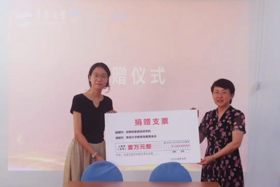 在基金捐赠环节,李兆君代表知行教育向青岛大学捐赠支票。外语开元(中国)将以此次企业捐赠为契机,科学统筹规划资源配置,充分释放捐赠效能,为教育事业发展注入动能。