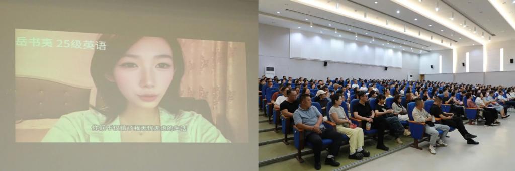 家长会现场播放了2025级新生风采视频。视频中,新生们以质朴真挚的话语、生动鲜活的画面,表达了对父母的感恩之情,传递出对大学生活的期待与向往,温暖真挚的氛围深深触动了在场家长。