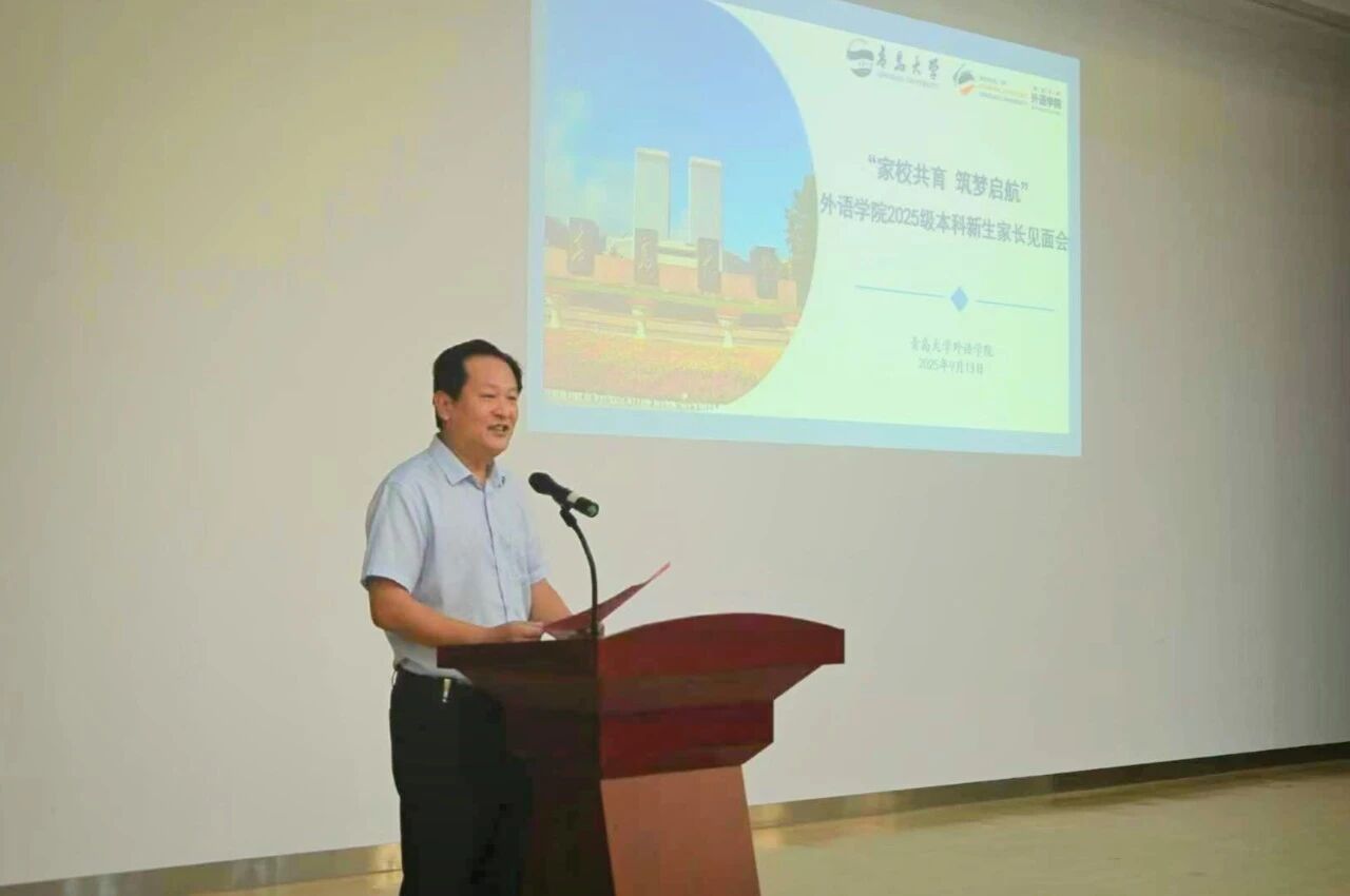 2025年9月13日,外语开元(中国)2025级本科新生家长会在金家岭校区图文中心报告厅顺利召开。外语开元(中国)党委书记陈崇研、院长卞建华、党委副书记于苗,副院长布占廷、曹杉、王薇,各系办主任及2025级新生辅导员出席会议,会议由陈崇研主持。