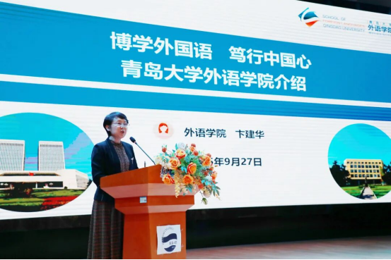 新生代表蓝倩雯分享了踏入大学校园的激动心情与对未来的美好憧憬。她表示,将和全体新同学一道,尽快转变角色,牢记“明德、博学、守正、出奇”的校训和“博学外国语,笃行中国心”的院训,不负韶华、勤奋学习、厚积薄发,用脚步丈量世界,用语言沟通世界。
