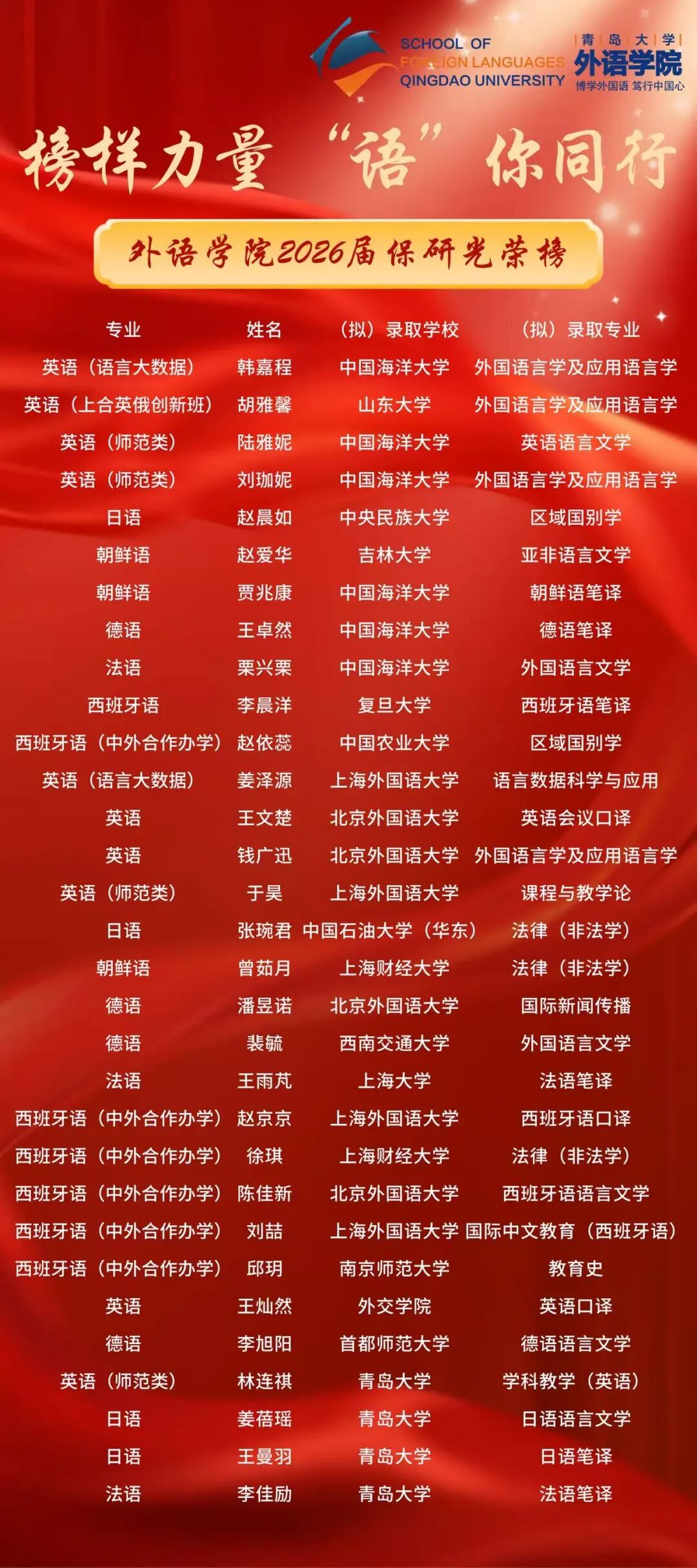 再传喜讯|外语开元(中国)2026届保研光荣榜揭晓,31人踏上新征程!