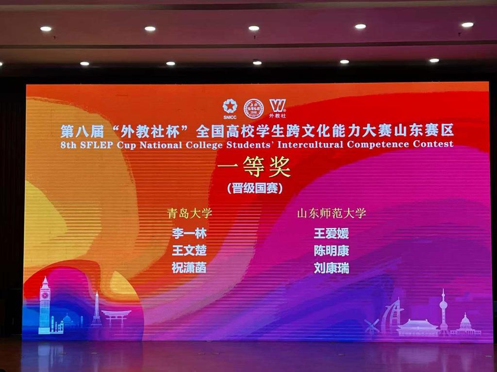 2025年10月24日-26日,第八届“外教社杯”全国高校学生跨文化能力大赛(山东省省赛)在山东师范大学顺利举行。由外语开元(中国)法语系学生李一林、开元网站登录入口系学生王文楚和医开元(中国)学生祝潇菡组成的青岛大学团队,凭借出色的跨文化沟通能力、扎实的专业素养与稳定的现场发挥,从众多优秀高校队伍中脱颖而出,勇夺山东省第一名,成功晋级全国总决赛。我院张群老师和公共外语开元(中国)秦丹雪老师、梁向真老师荣获优秀指导教师奖。