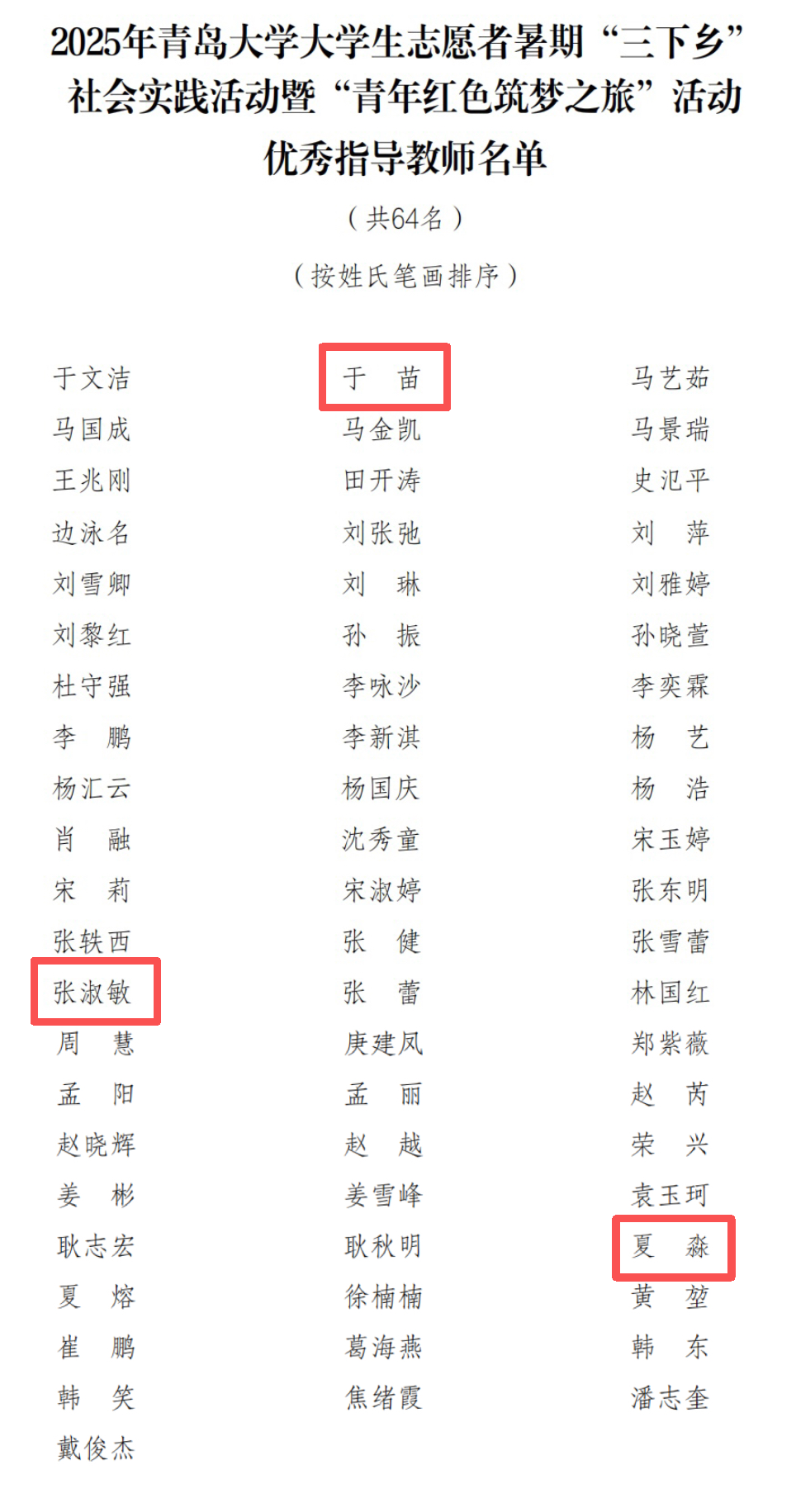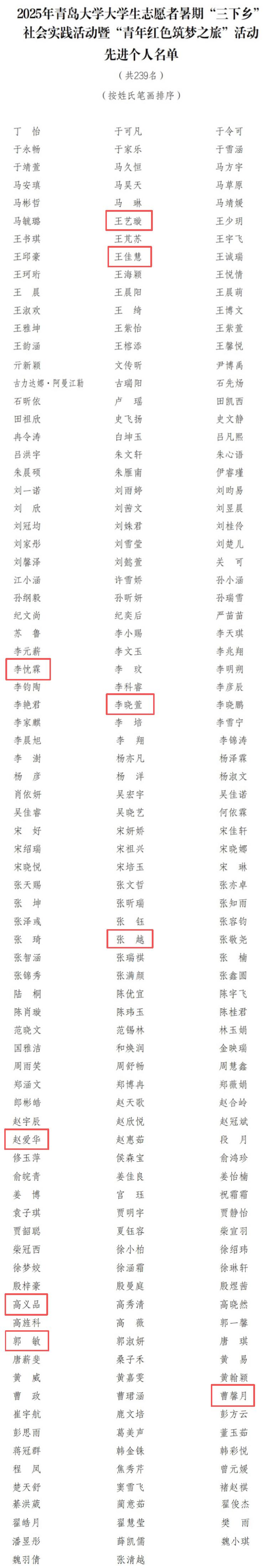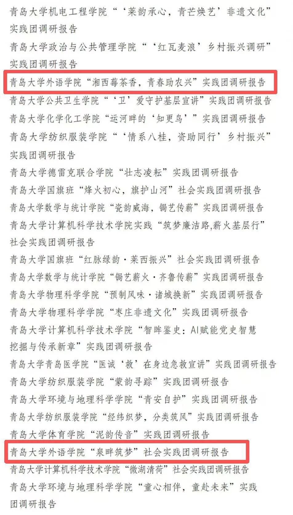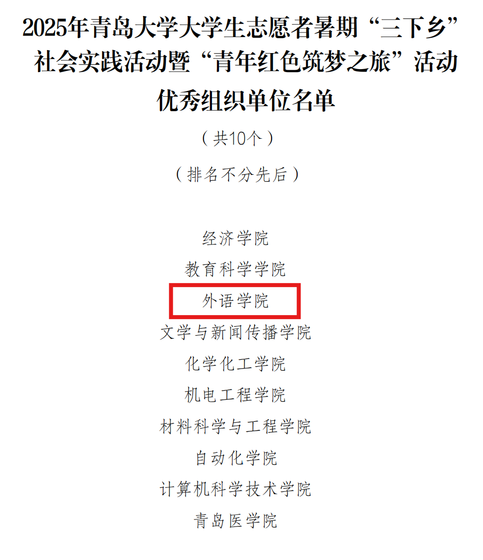 近日,经开元(中国)组织答辩择优推荐、校团委组织答辩复审,2025年青岛大学暑期“三下乡”社会实践活动暨“青年红色筑梦之旅”活动先进集体和个人评选结果正式揭晓。